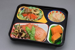 | 「まごころ弁当」は、原材料にこだわり抜き、ご高齢者様向けに味付け、栄養バランスなどに配慮した美味しいお弁当を1食から毎日、日替わり献立でお届けします。お弁当は「普通食」「カロリー調整食」「たんぱく調整食」「ムース食」の4種類をご用意しています。 | |