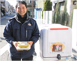 | 「まごころ弁当」は、原材料にこだわり抜き、ご高齢者様向けに味付け、栄養バランスなどに配慮した美味しいお弁当を1食から毎日、日替わり献立でお届けします。お弁当は「普通食」「カロリー調整食」「たんぱく調整食」「ムース食」の4種類をご用意しています。 | |